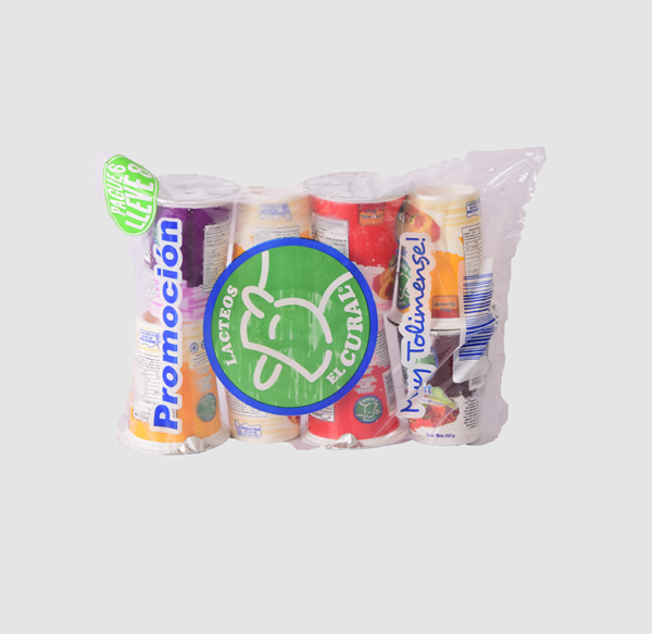 Kit de pague 6 lleve 8 de yogurt presentación vaso , producto elaborado con leche entera, de nuestro propio hato, recepcionada con altos estándares de calidad , con la adicción de cultivos lácticos benéficos en el sistema digestivo, bajo contenido de azúcar y adición de trozos de fruta fresca natural (Melocotón ,fresa , maracuya, guanábana y mora ) adquirida del mercado campesino, apoyando a la región, lo puedes encontrar en diferentes sabores con su delicada e inconfundible textura.